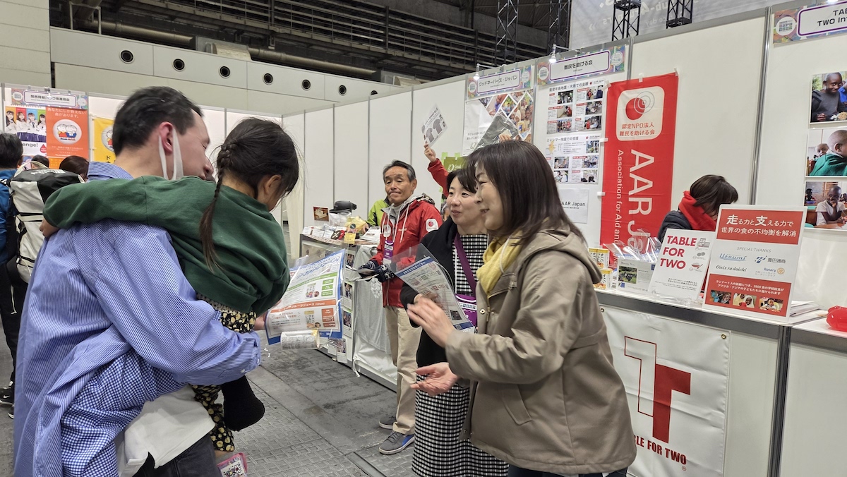 会場内は環境NGO、市町村団体、スポーツメーカーから食品メーカーまで様々なブースがあり、多くの人が足を止めて楽しんでいました。
